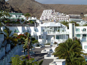 Wir reservieren noch im alten Jahr im Ipanema-Park in Puerto Rico, die, wie wir später festgestellt haben, einzige Penthouse-villa über 2 Ebenen mit einem riesigem Balkon und eigenem Whirlpool. Auch die Ausstattung ist perfekt in tollem Design. Alles weiß, Fußboden, Treppe und sanitäre Einrichtungen mit weißem Marmor gefliest. 60 qm Balkon eingeteilt in 3 Bereiche Tisch mit 4 Stühlen, 2 Liegen mit großem Sonnenschirm und Jacuzzi bietet eine tolle Aussicht auf den Yachthafen und Teile des Ortes., besonders abends im Whirlpool bei einer Flasche Rotwein. Wir sind begeistert! |